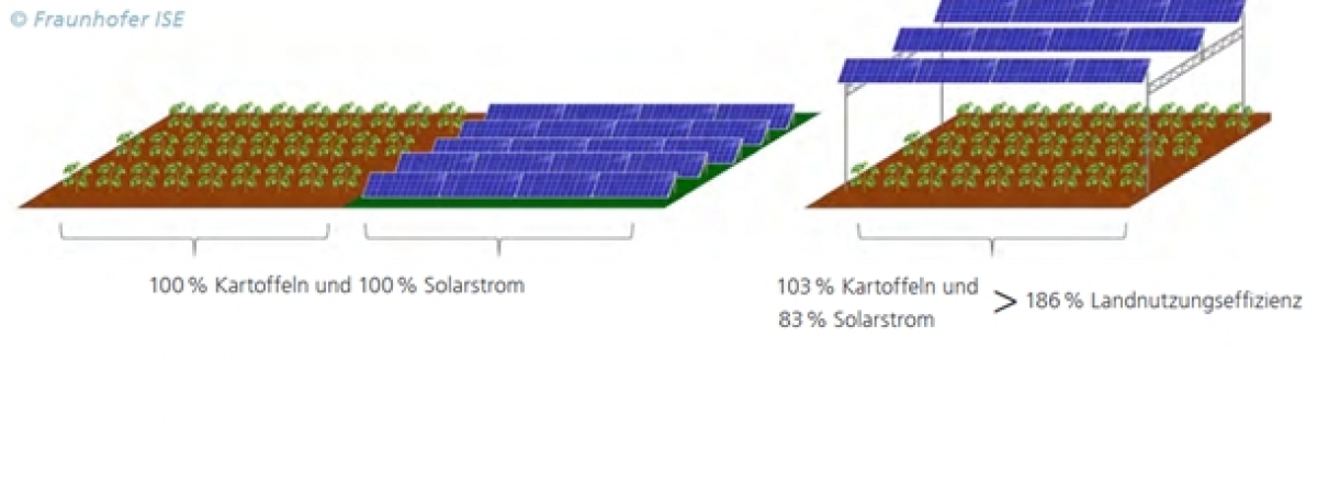 Abbildung 1: Flächennutzungseffizienz bzw. Landnutzungseffizienz nach Forschungsergebnissen am Beispiel Kartoffelanbau vom Fraunhofer ISE