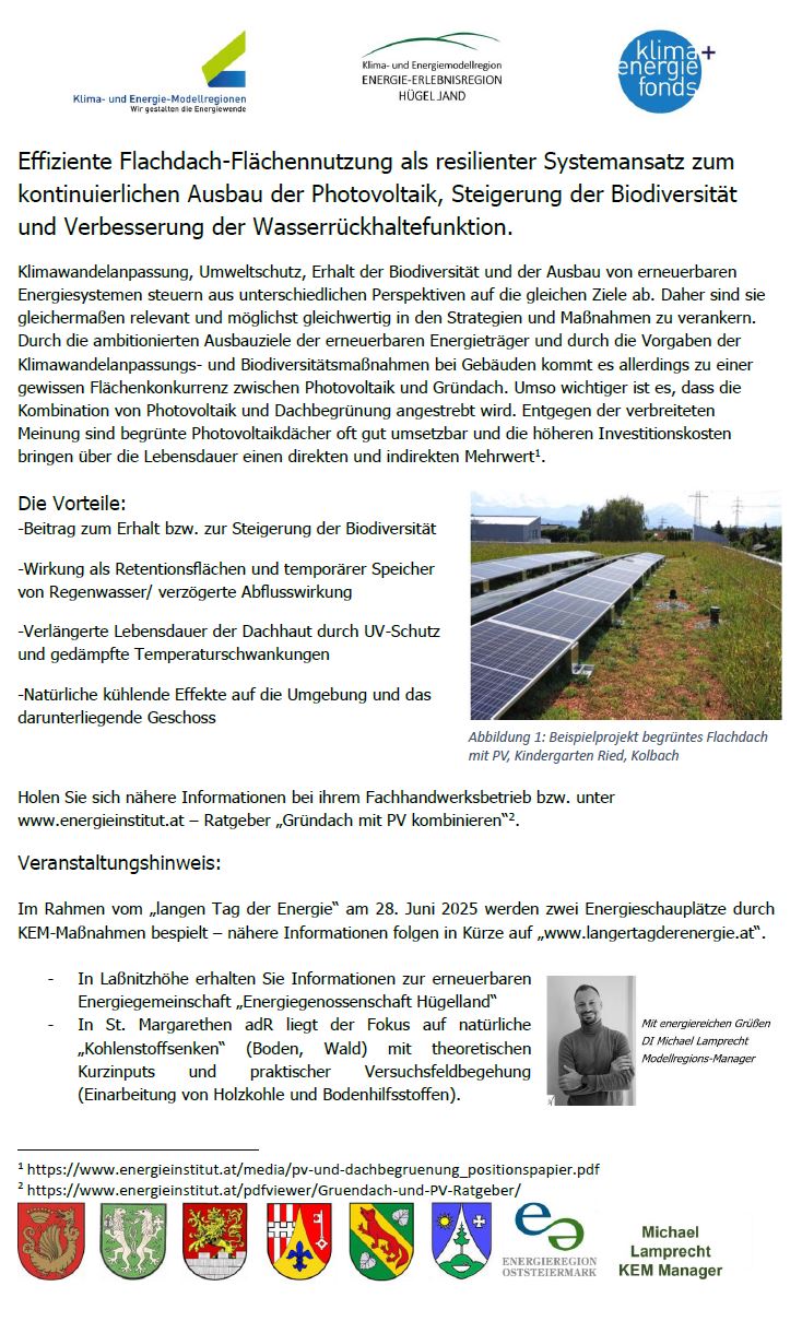 Samstag 17.5.2025, 9-13 Uhr Hügellandhalle (8321 St. Margarethen adR: KEM Energie- & Erlebnisregion Hügellnad)